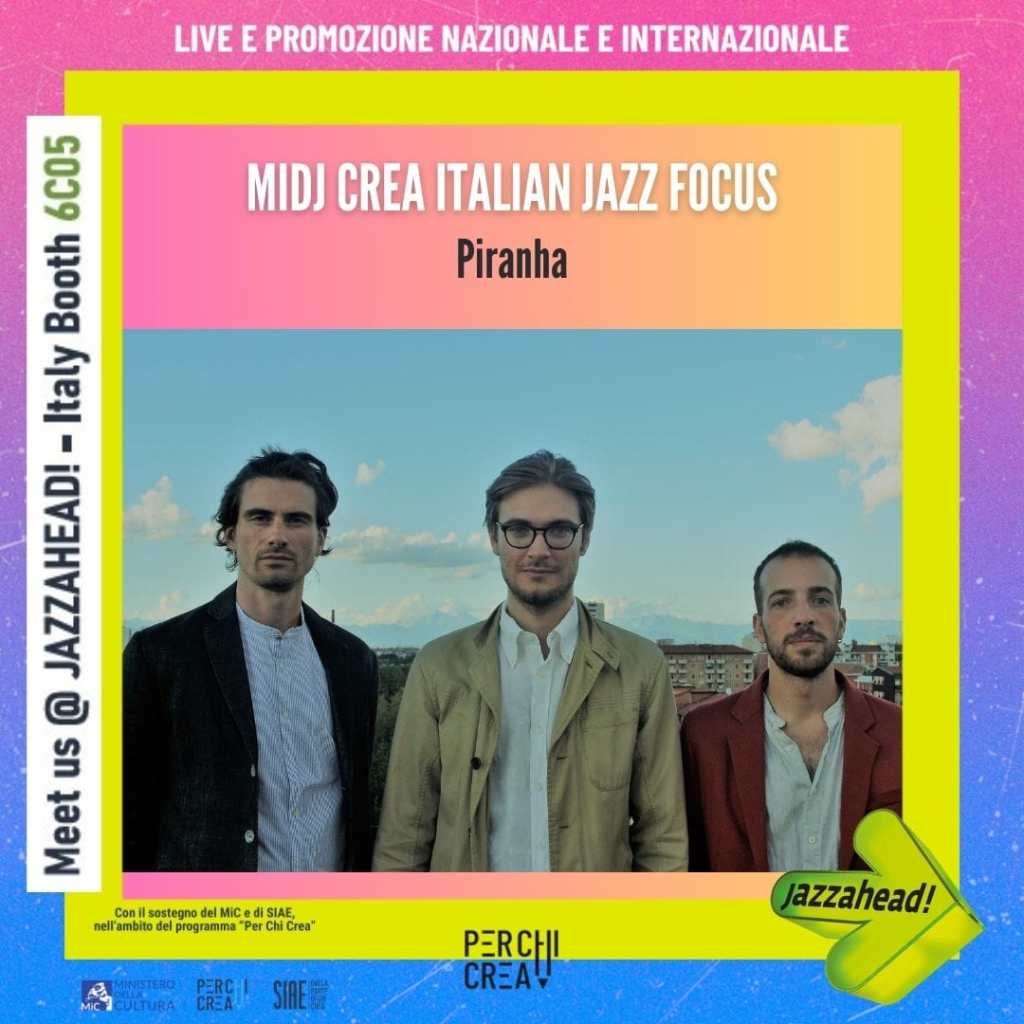We are very thrilled of being part of Midj Crea Italian Jazz Focus, a collaboration between Midj and SIAE that selected four italian bands to be presented at jazzahead! 2024. This is the very first time that an italian organisation presents representatives of the national musical scene in an international environment, and we are so glad of being one of this four projects. Together with us, our friends Mora (Miriam Fornari), Tendha (Fabrizio Carriero) and Informal Settings (Federico Nuti)